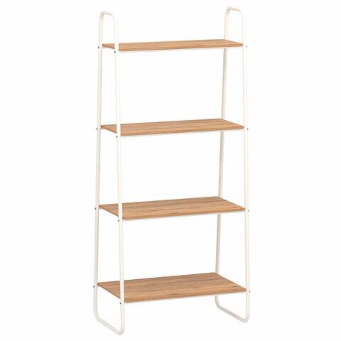 Стеллаж на металлокаркасе "Скандинавия-24", 650*385*1470 мм, 4 полки ЛДСП, белый/дуб, CТCП24 Б