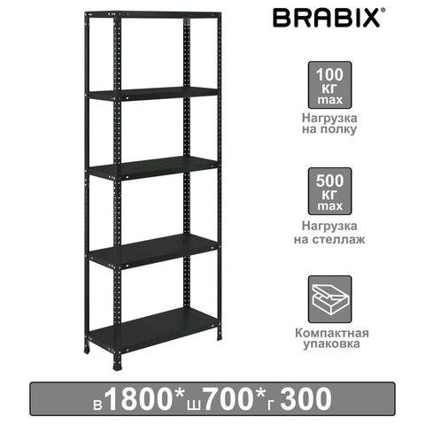 Стеллаж на металлокаркасе "Валенсия-25", 655*300*1555 мм, 5 полок, черный, СТВ25 Ч